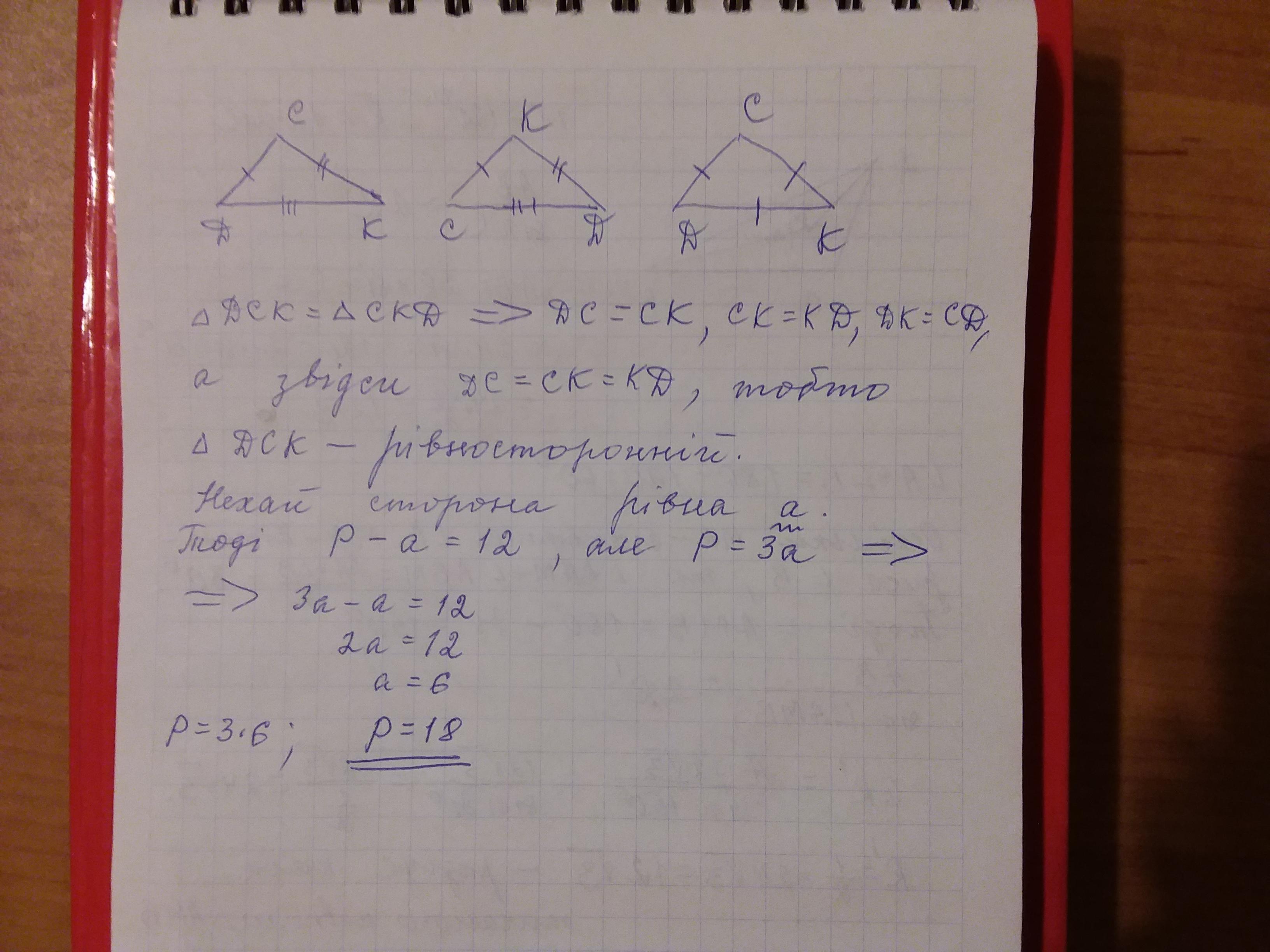 2.Відомо щоб трикутник DCK =CKD.Знайдіть периметр трикутника DCK якщо він на 12 см більший за сторону DC. СРОЧНО! ! ! СРОЧНО! ! ! БУДЬ-ЛАСКА!