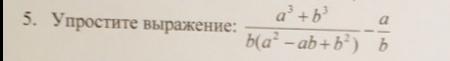 \frac{ {a}^{3} +  {b}^{3}  }{b( {a}^{2}  - ab +  {b}^{2}) }  -  \frac{a}{b}  =  \frac{(a + b)( {a}^{2} -ab +  {b}^{2})}{b( {a}^{2}  - ab +  {b}^{2})}  -  \frac{a}{b}  =  \frac{a + b}{b}  -  \frac{a}{b}  =  \frac{a + b - a}{b}  = 1