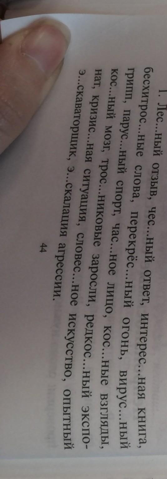 Лестный (лесть) отзыв, честный (честь) ответ, интересная (интерес) книга, бесхитростные (хитрость) слова, перекрёстный (нáкрест) огонь, вирусный (вирус) грипп, парусный (парус) спорт, частное (часть) лицо, косный (косить) взгляды, костный (кость) мозг, тростниковые (тростинка) заросли, редкостный (редкость) экспонат, кризисная (кризис) ситуация, словесное (словеса) искусство, опытный экскаваторщик (экскаватор), эскалация (словарное слово) агрессии.
