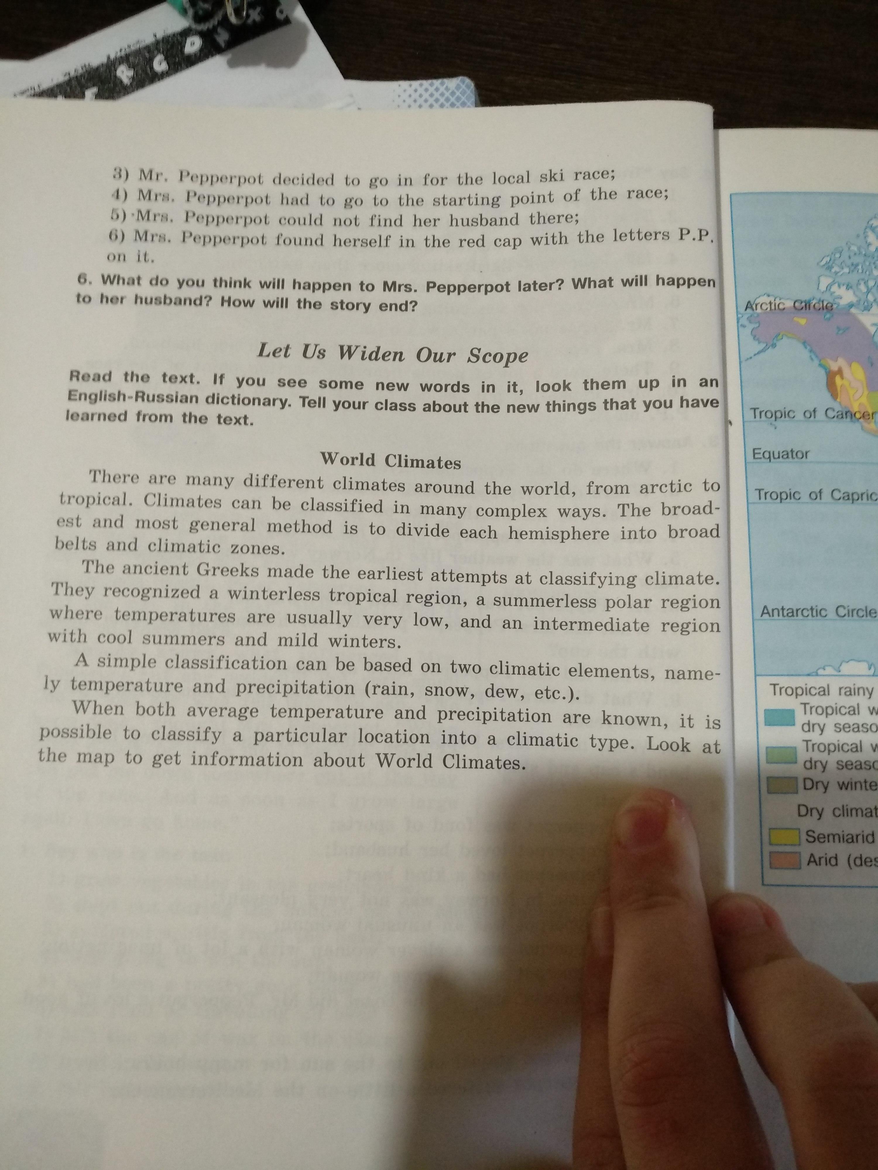Существует множество различных климатических условий по всему миру, от арктического до тропического. Климатические условия могут быть классифицированы многими сложными способами. Самый распространенный и самый общий метод состоит в том, чтобы разделить каждое полушарие на широкие пояса и климатические зоны. Древние греки предприняли самые ранние попытки классификации климата. Они узнавали тропический регион без зимы, полярный регион без лета, где температура обычно очень низкая, и промежуточный регион с прохладным летом и мягкой зимой. Антарктика простая классификация может быть основана на двух климатических элементах, названии температуры и осадков (дождь, снег, роса и др. ). Когда известны как средняя температура, так и осадки, можно классифицировать конкретное место по климатическому типу. Посмотрите на карту, чтобы получить информацию о мировом климате.