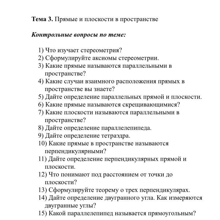 - 11)Определение. Прямая называется перпендикулярной к плоскости, если она перпендикулярна к любой прямой, лежащей в плоскости. ... Если одна из двух параллельных прямых перпендикулярна к плоскости, то и другая прямая перпендикулярна к этой плоскости.