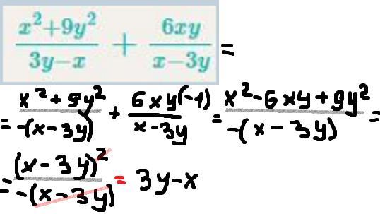 x²+9у²/ 3у-х - 6xy/x-3y= x²+9y²-6xy/3у-x=3y-x