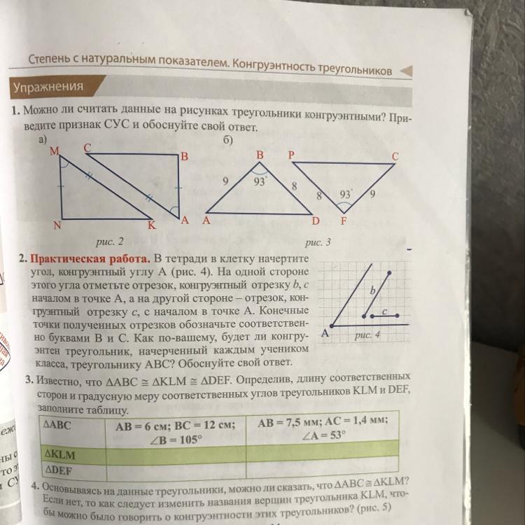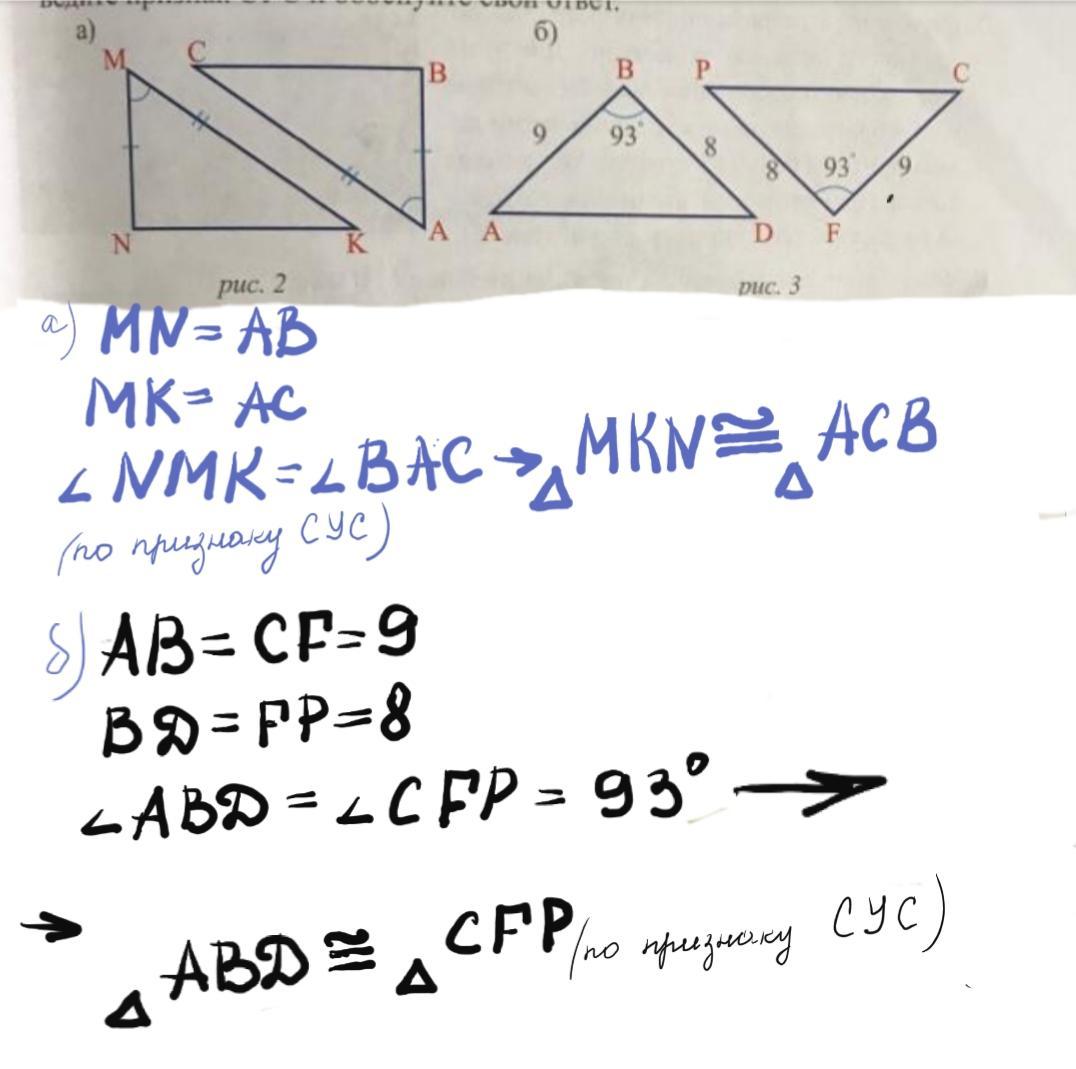 1)МN=AB ;MK=AC ; <NMK= <BAC, следовательно треугольник МКN конгруэнтен треугольнику АСВ по двум сторонам и углу между ними-по признаку СУС(сторона -угол-сторона)