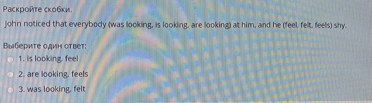3) Was looking, feel. John noticed that everybody was looking at him, and he felt shy.