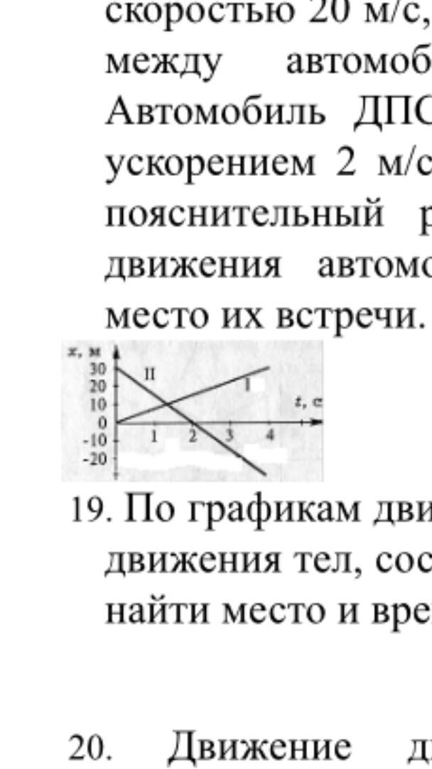По графикам движения определить направление движения тел, составить уравнения их движения, найти место и время встречи.
