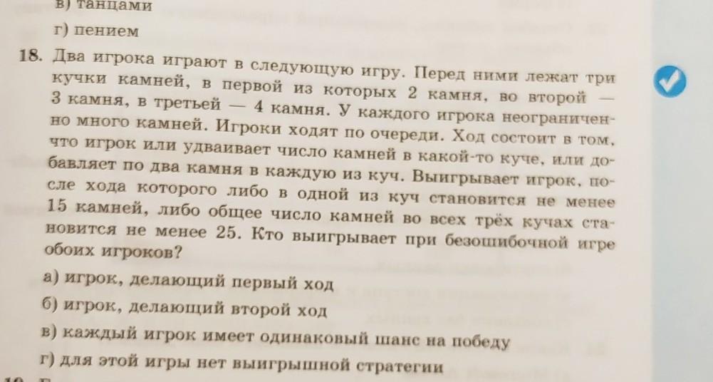 Пусть первый игрок увеличил на 2 все кучи. Тогда в кучах будет 4, 5, 6 камней. После хода второго возможны следующие комбинации: (6, 7, 8), (8, 5, 6), (4, 10, 6), (4, 5, 12). После этого первому достаточно увеличить вдвое число камней в наибольшей куче и выиграть.