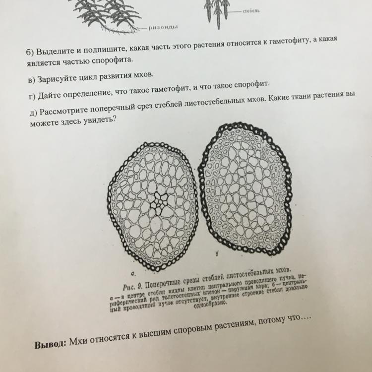 вывод: мхи относятся к высшим споровым растениям, потому что у них имеются листья, стебель - это признак высших растений, а споровые они, потому что мхи размножаются спорами.