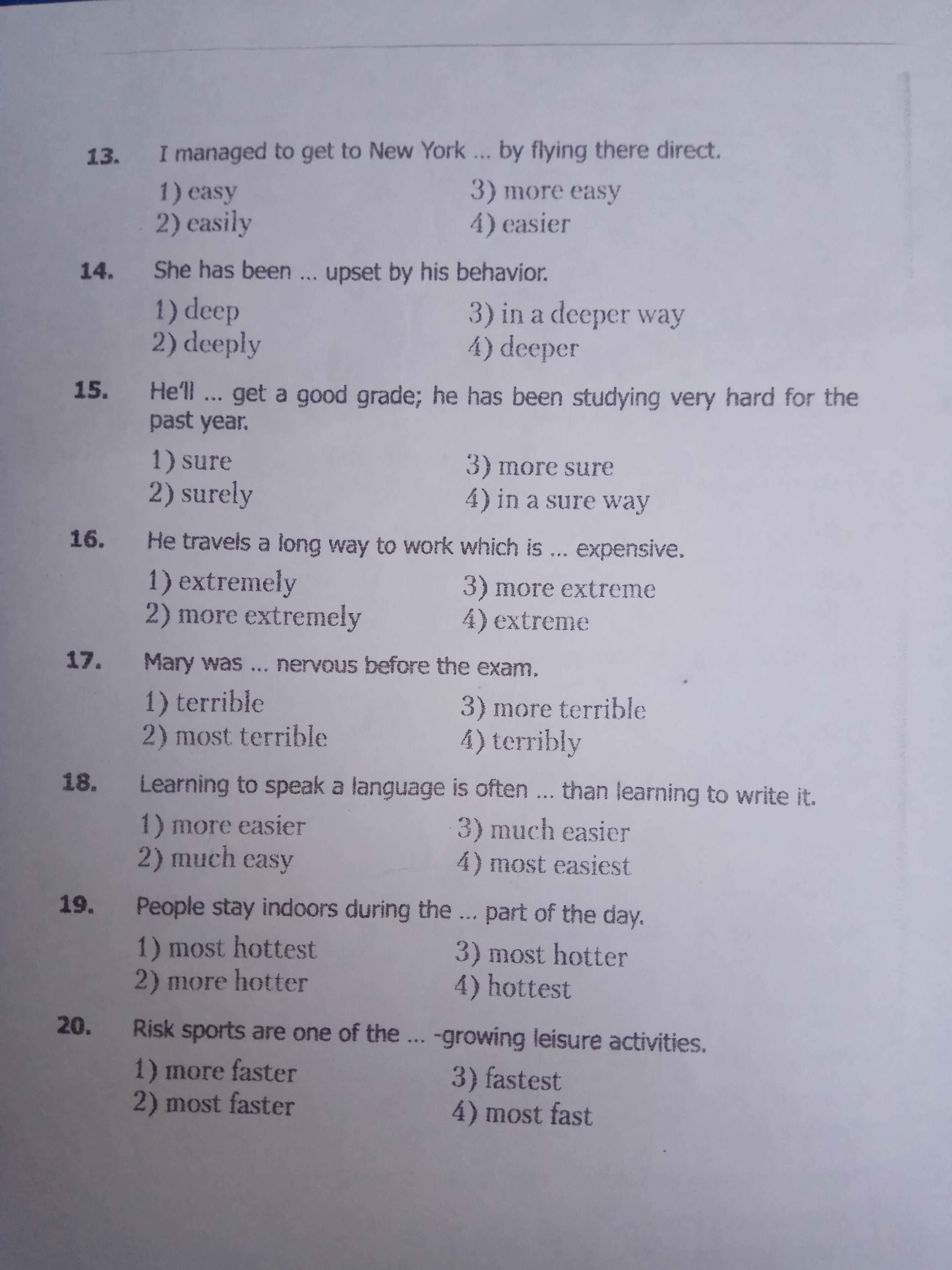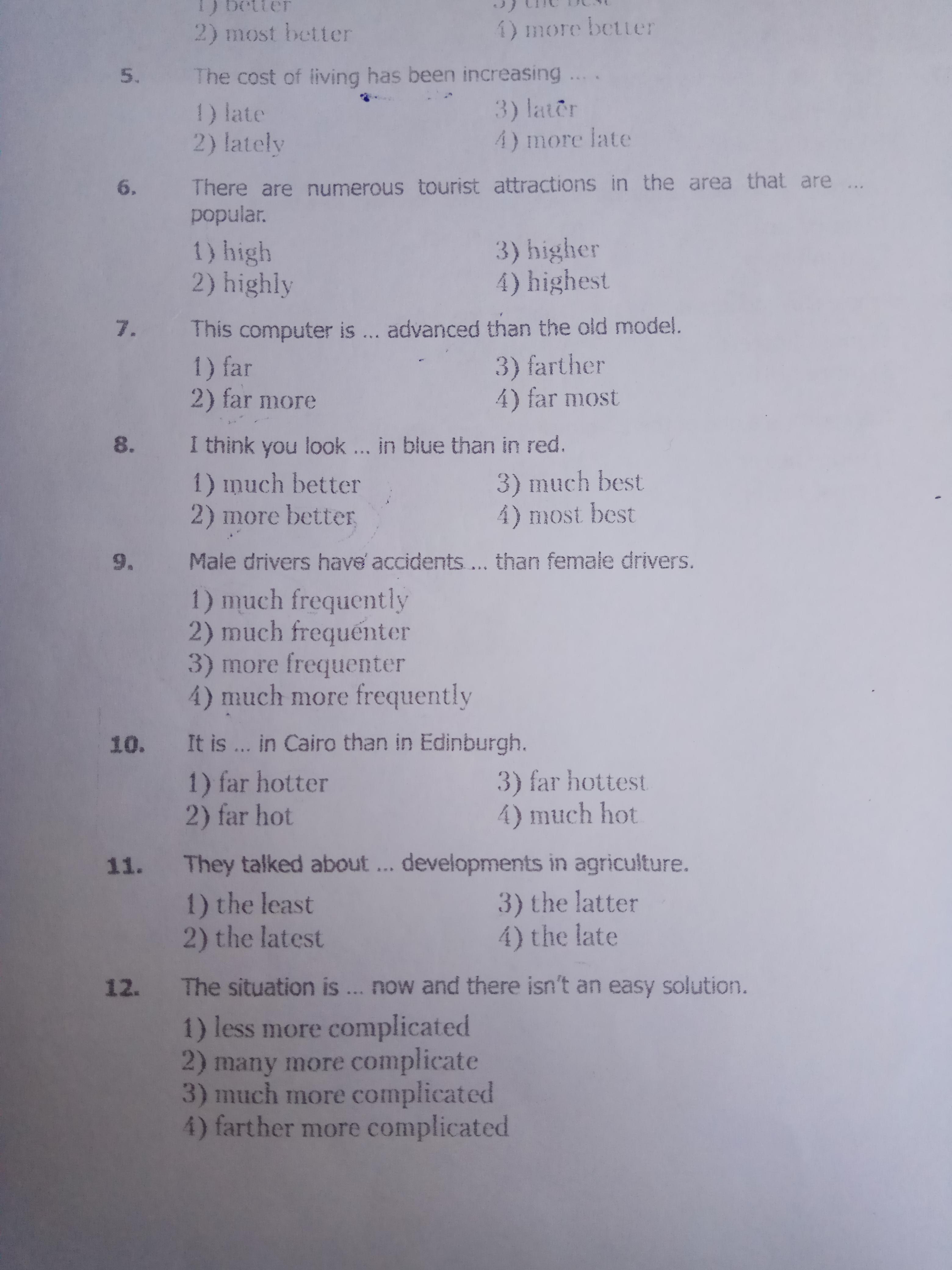 5.2)lately 6.2) highly 7.2) far more 8.1) much better 9.4) much more frequently 10.1) far hotter 11.2) the latest 12.3) much more complicated 13.2) easily 14.2) deeply 15.2) surely 16.1) extremely 17.4) terribly 18.3) much easier 19.4) hottest 20.3) fastest