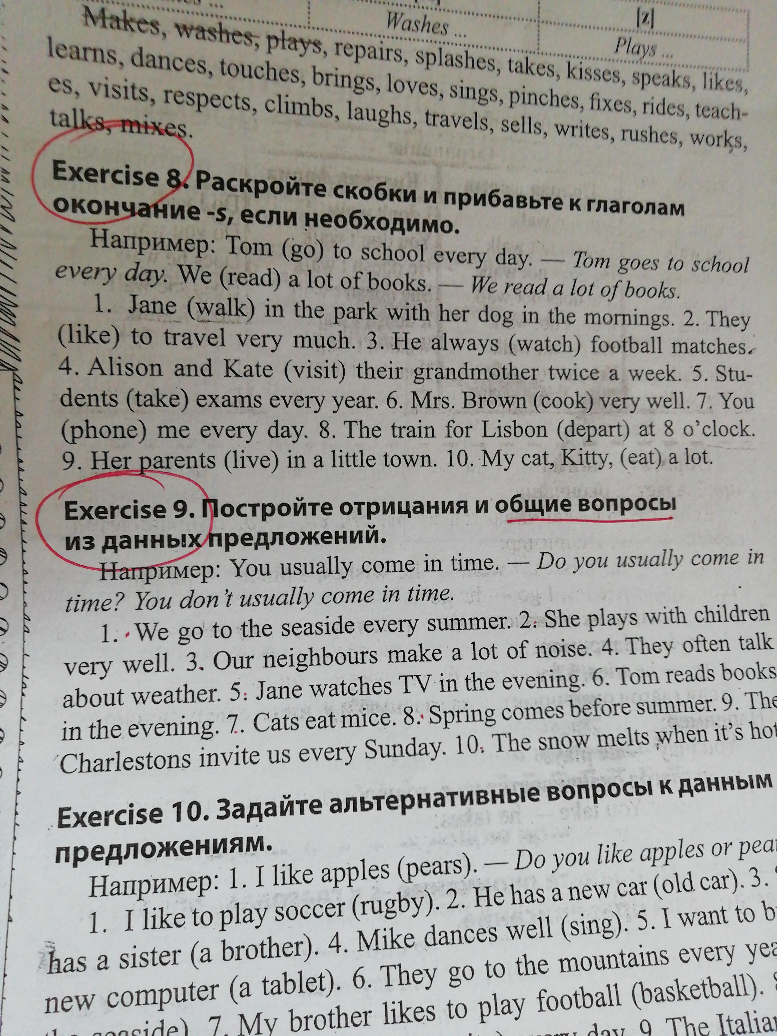 6. Does Tom read books every evening? Tom doesn't read books every evening.