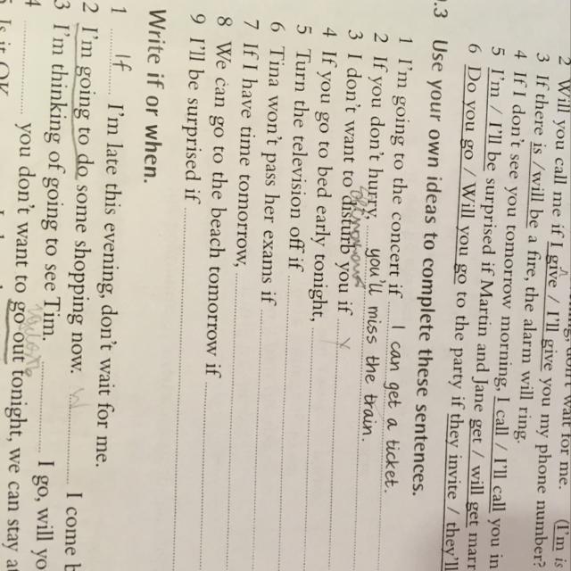3 ...if you're busy. 4... you'll feel better tomorrow. 5...if you want to do your homework. 6...if she doesn't study hard 7...I will phone you. 8...if it is sunny. 9...if he does it himself.