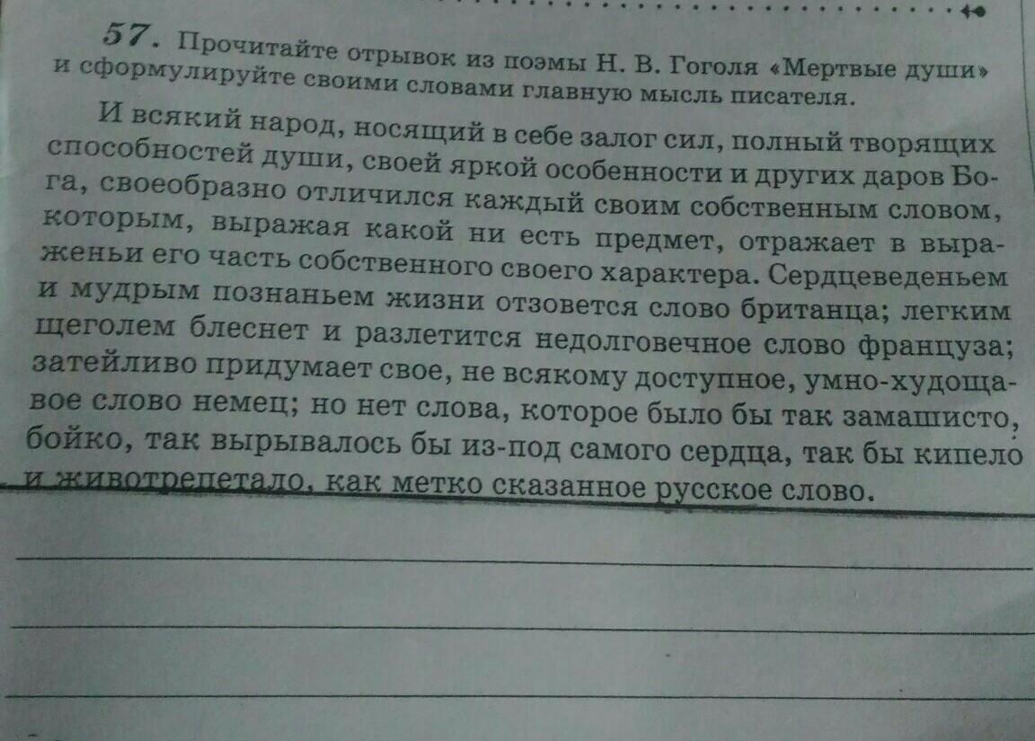 Главная мысль писателя в том, что русский язык богат и красноречив, чего не скажешь о других языках мира. Это позволяет русскому народу выражаться еще более красиво и индивидуально.