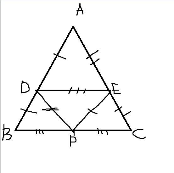 Р(DEP)=1/2АВ+1/2ВС+1/2АС=1/2Р(АВС), ⇒