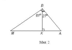 поможіть. на мал. 2 BK висота трикутника ABM кут ABK = 27 градусів кут KBM=61 градус. Знайдіть кути трикутника ABM . СРОЧНО! ! ! СРОЧНО! ! ! СРОЧНО! ! ! наперед дякую