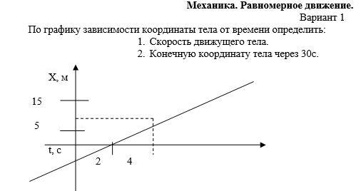 2) т. к. мы знаем скорость тела, то можем найти конечную координату тела через 30с ! нужно скорость (2,5м/с) умножить на время (30с) и получим конеяну. координату = 75м