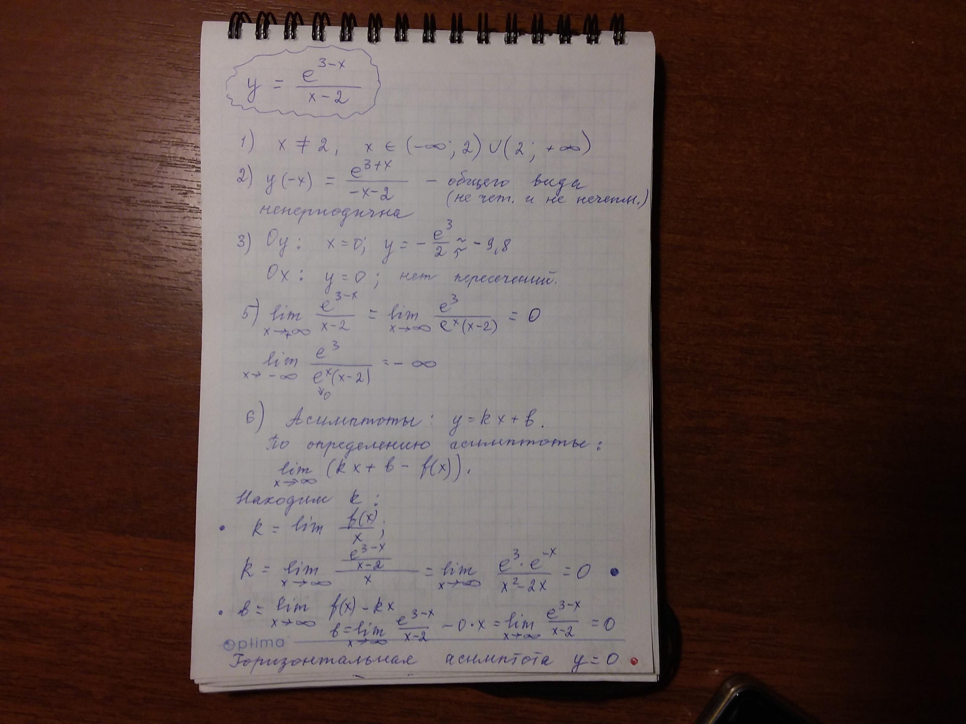 Вы вообще ничего не написали про поиск асимптоты на минус бесконечности (другое дело, что там ее нет)
