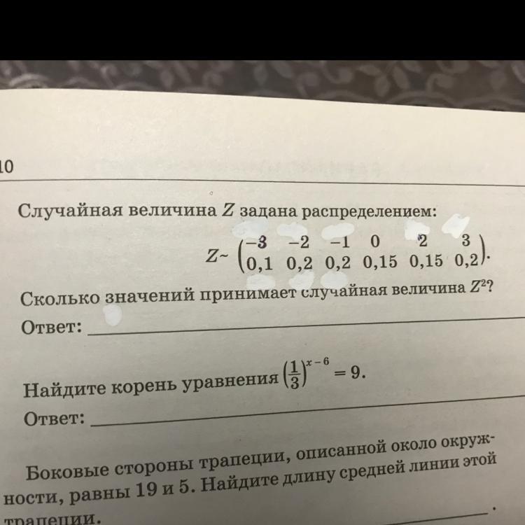 Возвышаем в квадрат значения, принимаеиые случайной величиной Z. Получаем значения 9, 4, 1, 0.