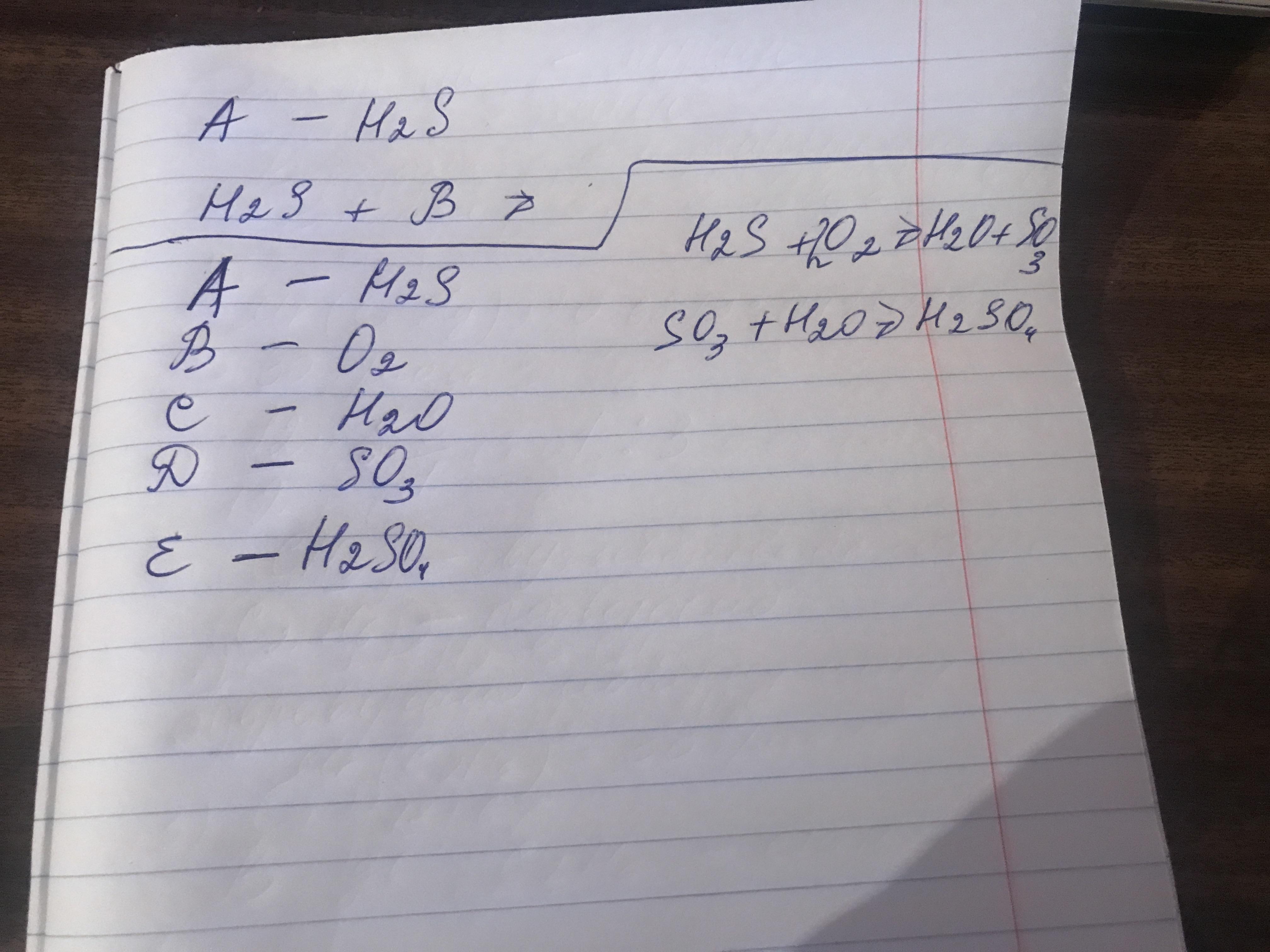 на столі знаходяться 5 закритих банок. Речовина Е і розчин речовини А - кислоти, С і D - оксиди, В - проста речовина. Відомо, що речовина А має неприємний запах тухлих яєць. Речовини пов'язані між собою наступними переслідуваннями А +В —> С +D; C + D—> E. Які речовини можуть знаходитися в кожній банці?