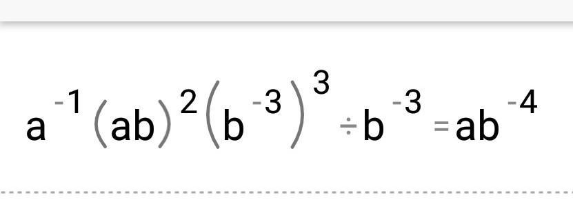 a^-1*a^2*b^2*b^-9:b^-3=a^(-1+2)*b^(2-9+3)=a*b^-4 при делении показатели вычитаются-7-(-3)=-7+3=-4