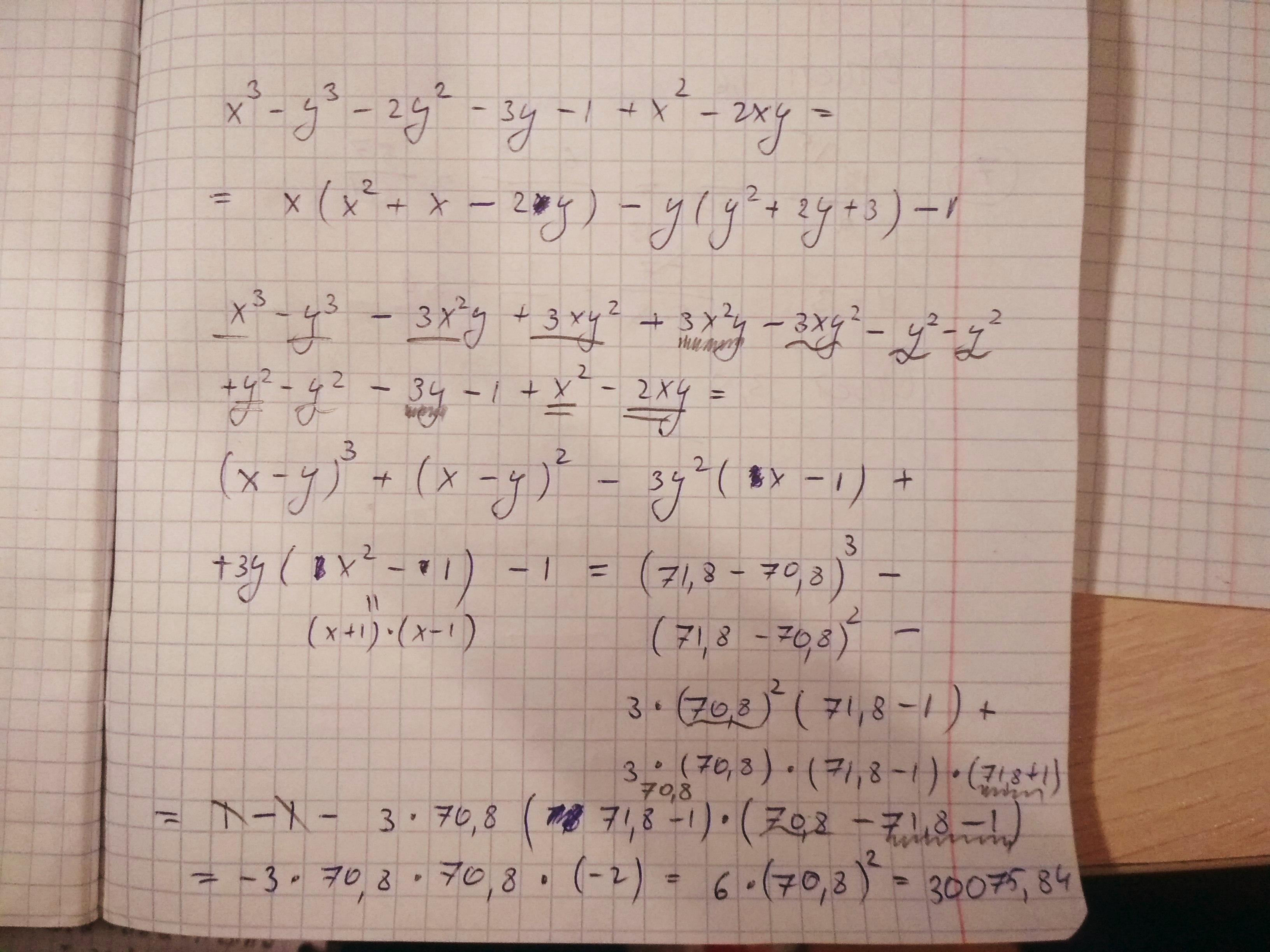 x^3-y^3-2y^2-3y-1+x^2-2xy, если x=71,8 и y=70,8