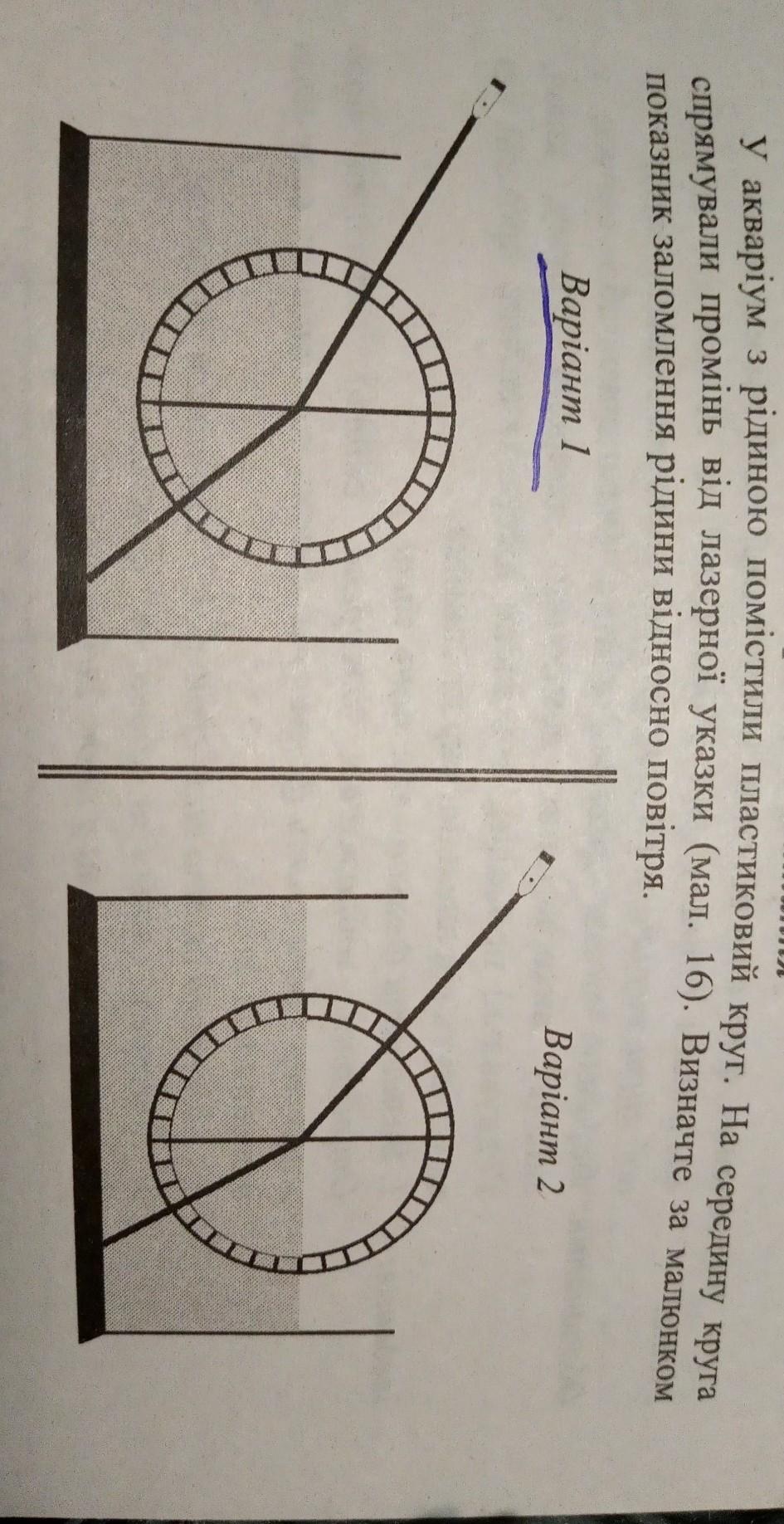 ПОМОГИТЕ! СРОЧНО! в аквариум с жидкостью поместили пластиковый круг. К середине круга направили луч от лазерной указки (рис. 16). Определите по малюнку показатель преломления жидкости относительно воздуха. СРОЧНО! ДАЮ 20 БАЛЛОВ !