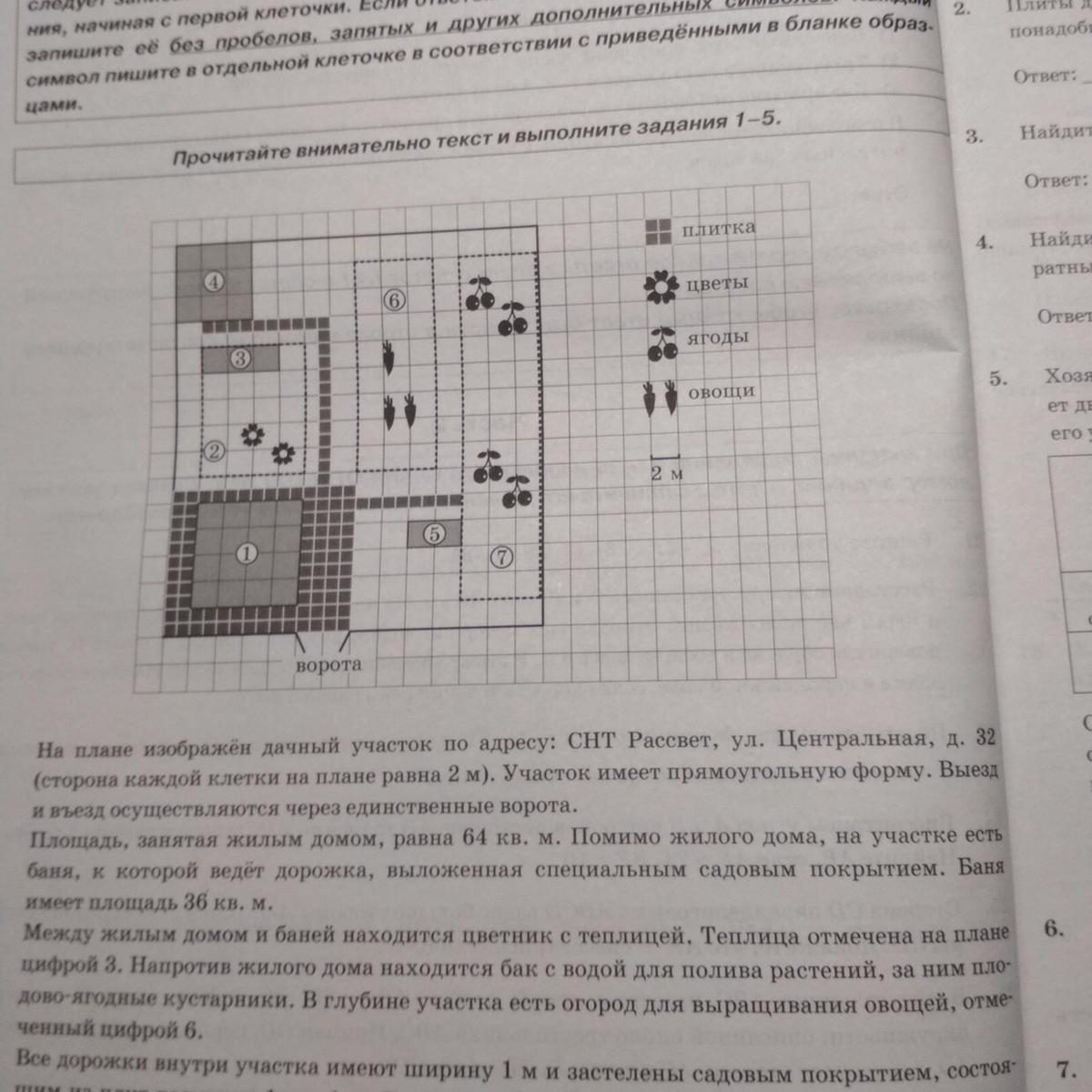 1. Плиты для садовых дорожек продаются в упаковке по 5 шт. Сколько упаковок плит понадобилось, чтобы выложить все дорожки и площадку вокруг дома?
