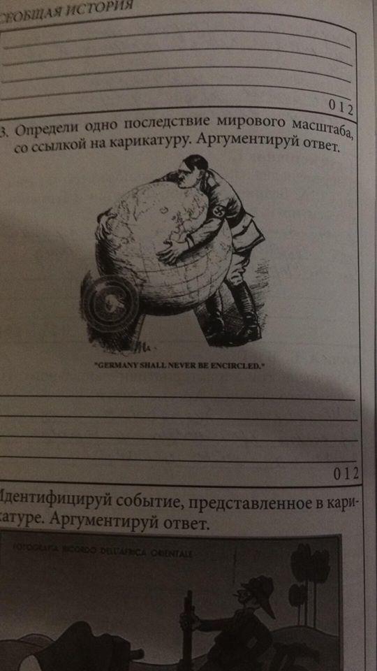 Событие: Вторая Мировая война. Во время этой войны Адольф Гитлер хотел стать правителем всего мира. На карикатуре можно увидеть того же Гитлера, который обнимает глобус, как бы присваивая его себе. Глобус здесь сравнивают со всем миром.