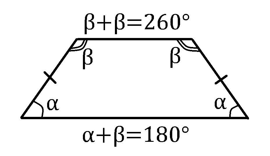 Сумма двух углов равнобедренной трапеции равна 260 найдите наименьший угол трапеции ответ дайте в градусах Срочнооооо