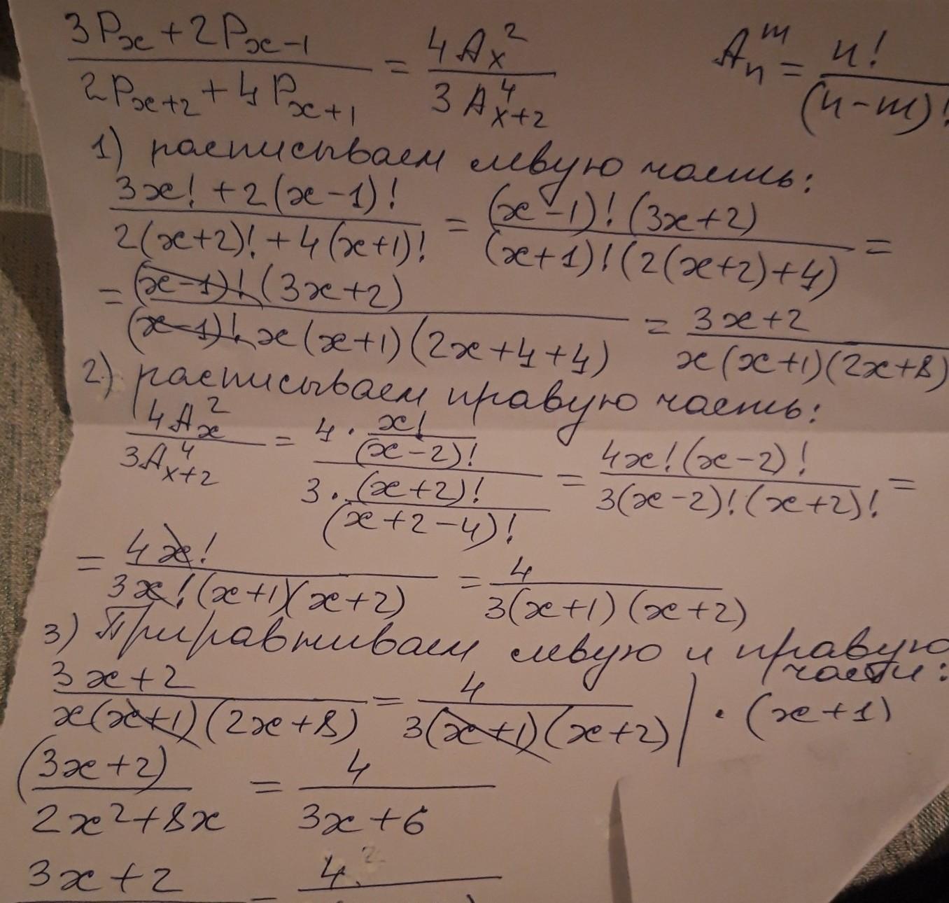 х=6 Применяем формулы факториала и размещений.