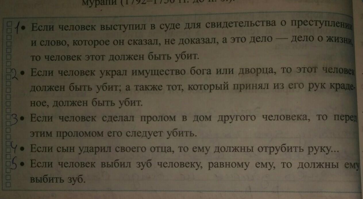 прочитай выдержки из законов вавилонского царя Хаммурапи.