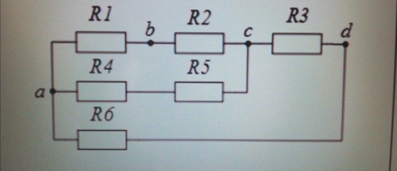 Невероятно простая схема, состоящая из шести резисторов с обозначенными узловыми точками. Все сопротивления резисторов равны между собой и составляют 12 Ом. Источник ЭДС подключается к точкам, указанным в вариантах. Положительна полярность подключаемой ЭДС приложена к точке, указанной первой. Значение ЭДС составляет 60 В. Внутренним сопротивлением пренебрегаем.