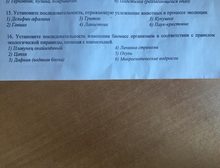 15. Ланцетник --> паук-крестовик --> тритон --> гавиал --> кукушка --> дельфин афалина.