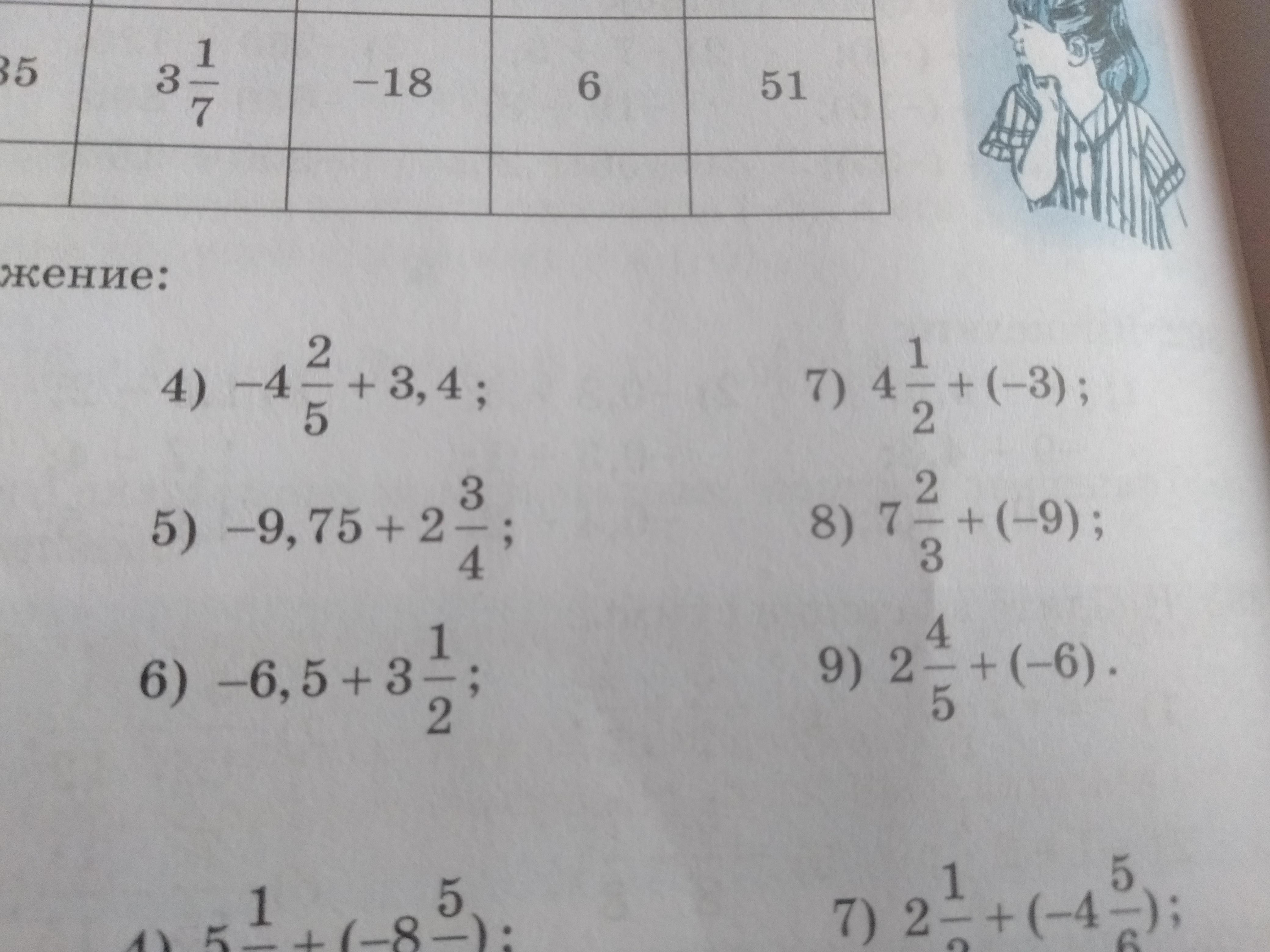 7)4(одна вторая) + (-3) = 1(одна вторая)=1,5