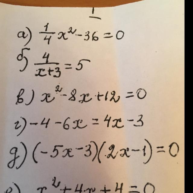 в) x^2-8x+12 = 0 (это супер простое квадратное уравнение, решаем при помощи дискриминанта)