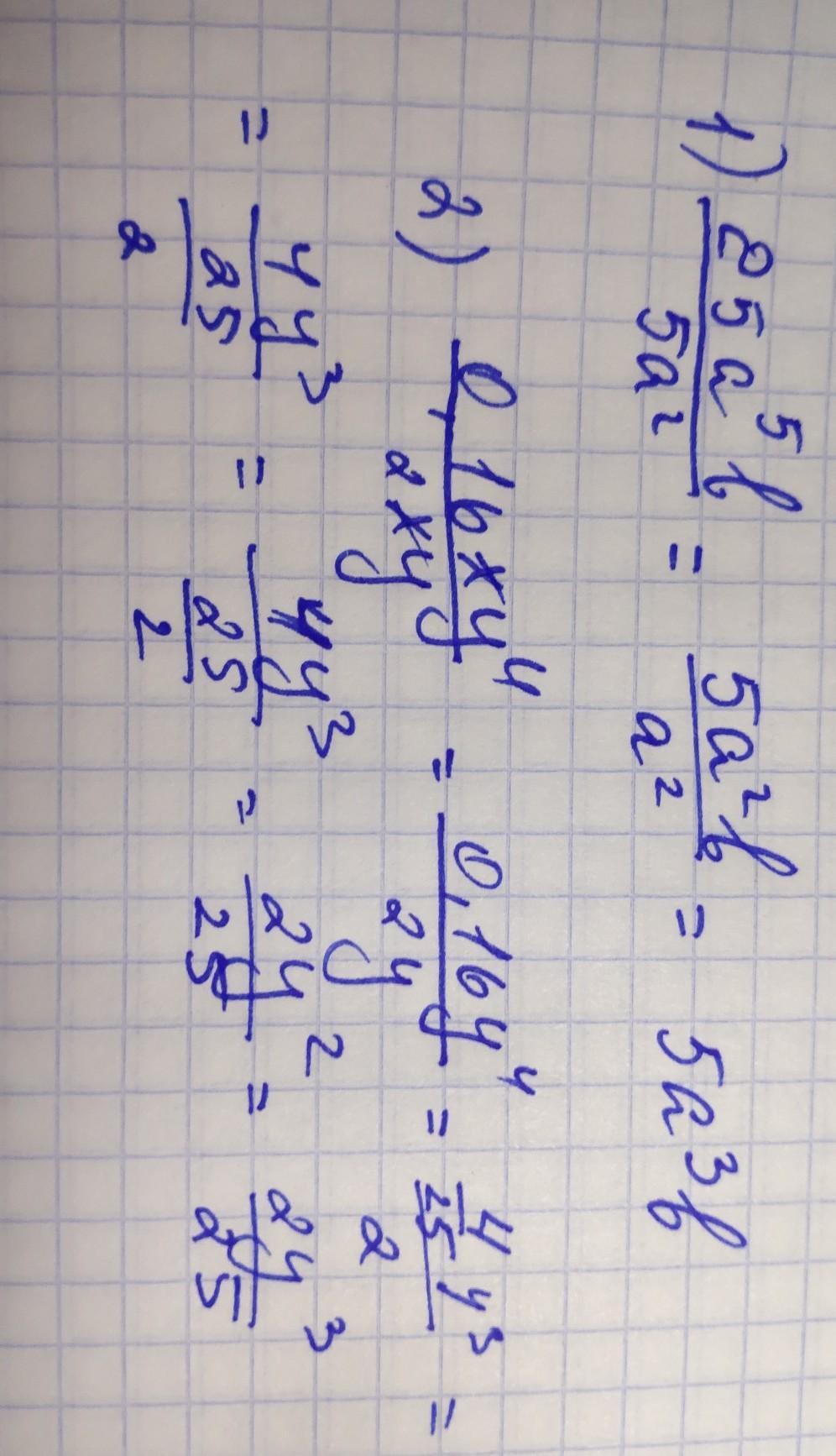 25 делим на 5, равно 5, делиние числителя на знаменательном производит вычитание у буквенных выражений как итог ответ 5 а в третей степени на б