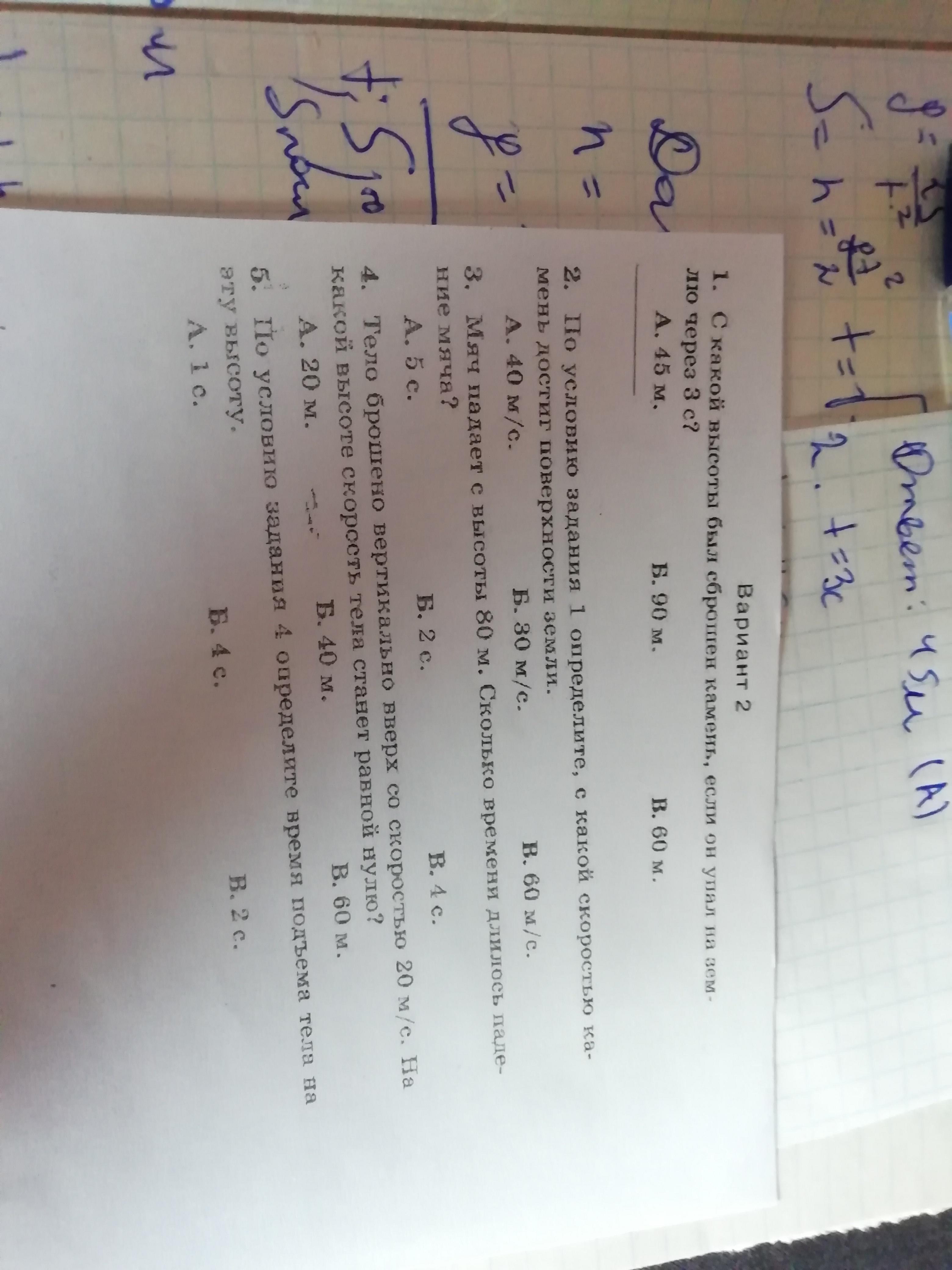 2 t=sqrt(2*h:q)=sqrt(2*45:10)=3 секунды