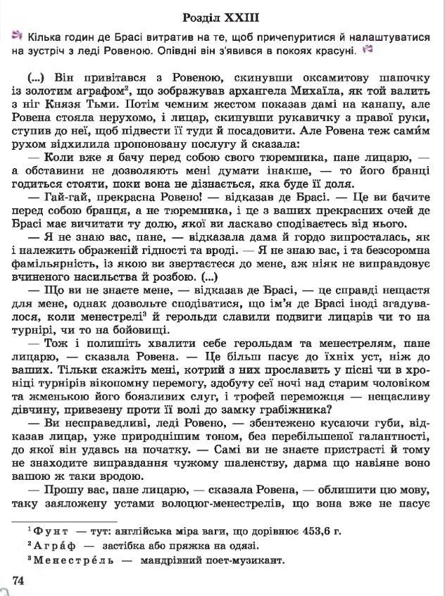 вам потрібно переказати розділ 23, роман "Айвенго". Він є в зарубіжній літературі сьомого класу. Автори: Євгенія Волощук та Олена Слободянюк. Роман: сторінка 74- 76.