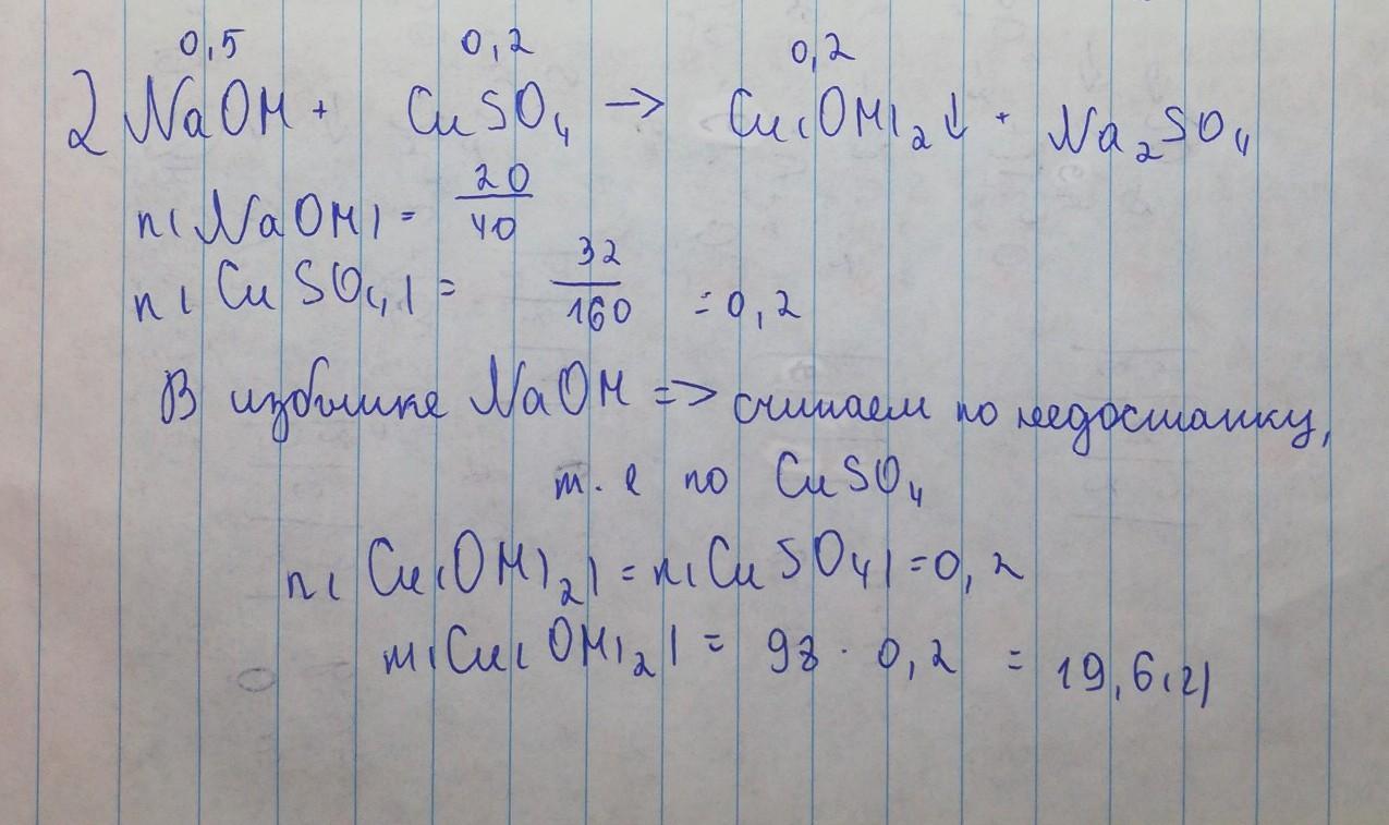 Помогите, пожалуйста, выполнить задание, 9 класс: Вычислите массу осадка, полученного при взаимодействии 20г щелочи Na и 32г сульфата (II) меди.