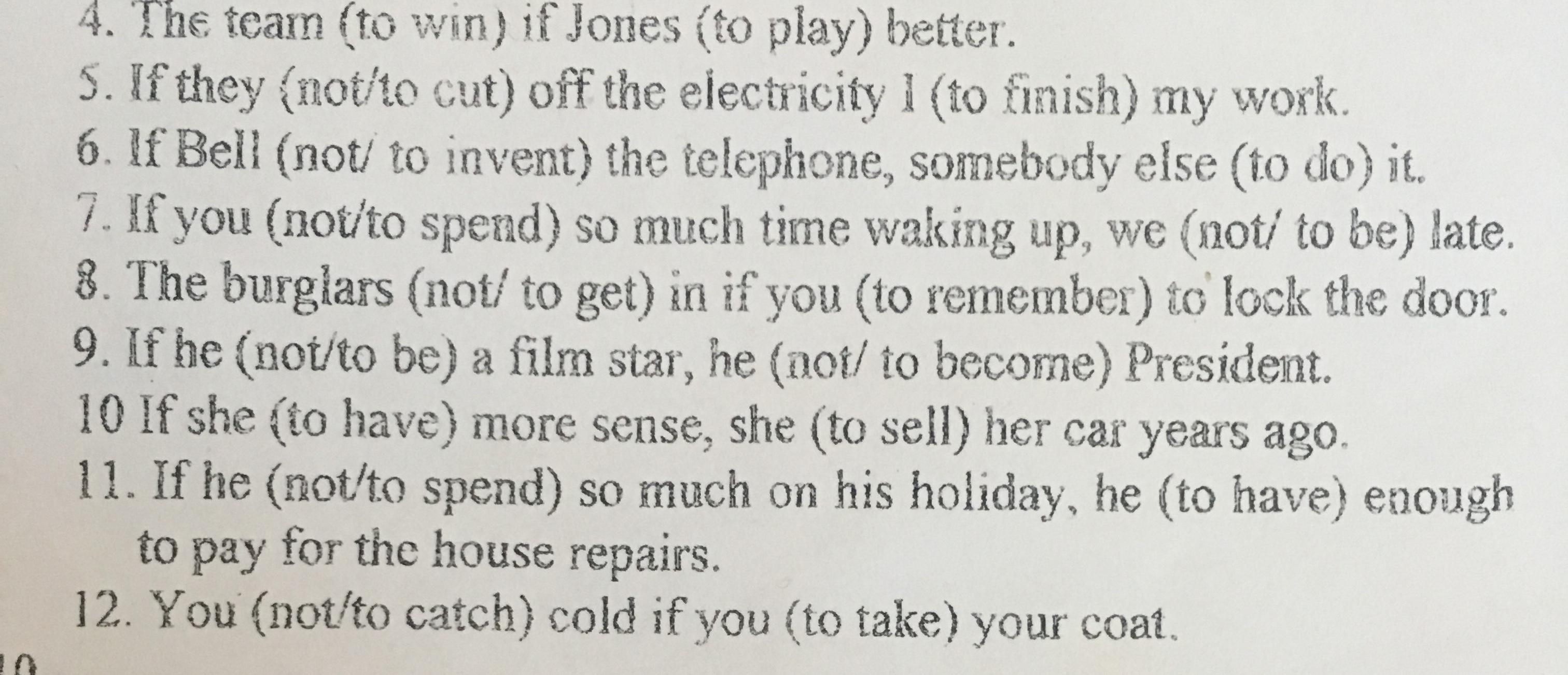 11. If he doesn't spend so much on his holiday, he will have enough to pay for the house repairs.