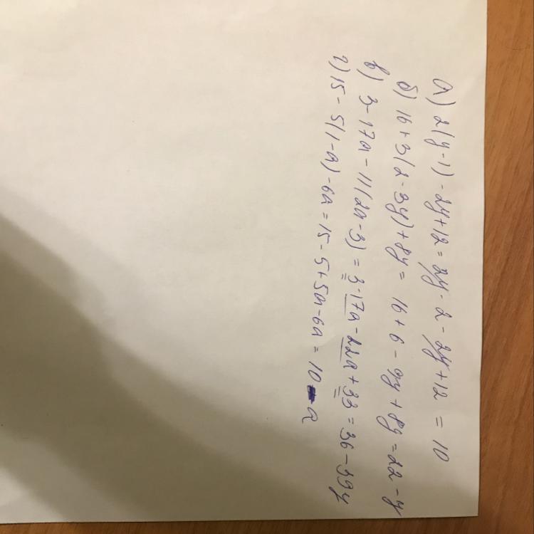г) 15 - 5+ 5а- 6а= 10 - 1а