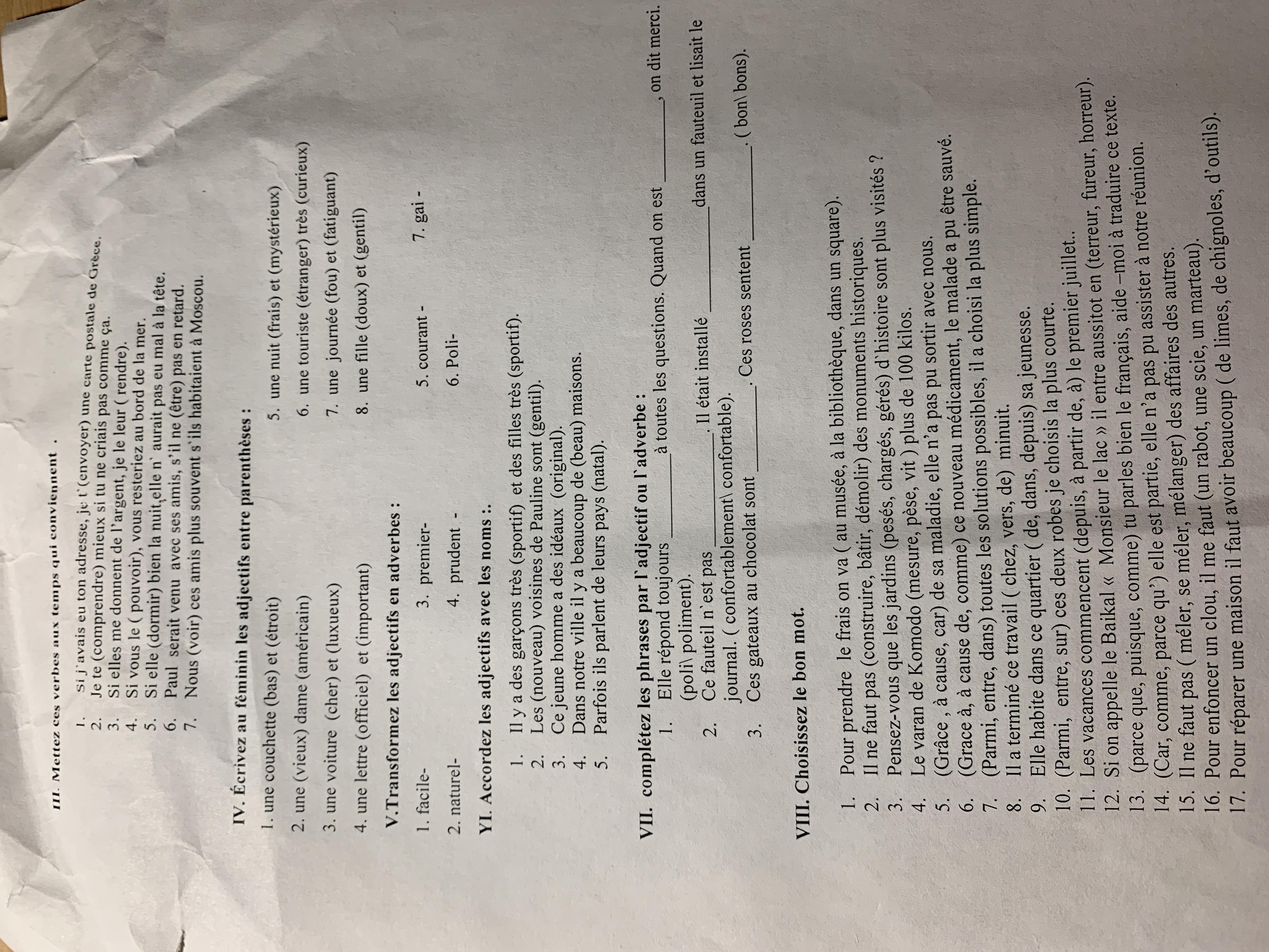 №7 1. poliment/ poli 2. confortable/ confortablement 3. bons/ bon