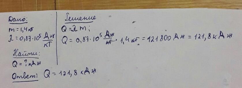 87000 Дж\кг * 1.4 кг = 121800 Дж