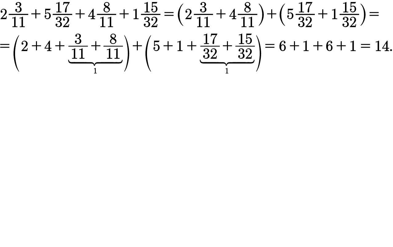 2 3/11+ 5 17/32+4 8/11+1 15/32=14