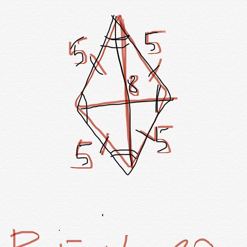 В ромбе со стороной 5 см одна из диагоналей равна 8 см. Сделайте на рис. 3 чертёж и найдите периметр четырёхугольника, вершинами которого являются середины ромба.