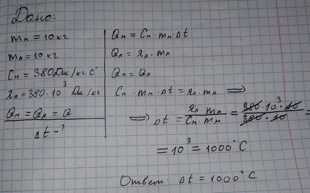На скільки градусів можна нагріти 10кг міді використавши кількість теплоти, яка виділиться під час кристалізації 10кг алюмінію