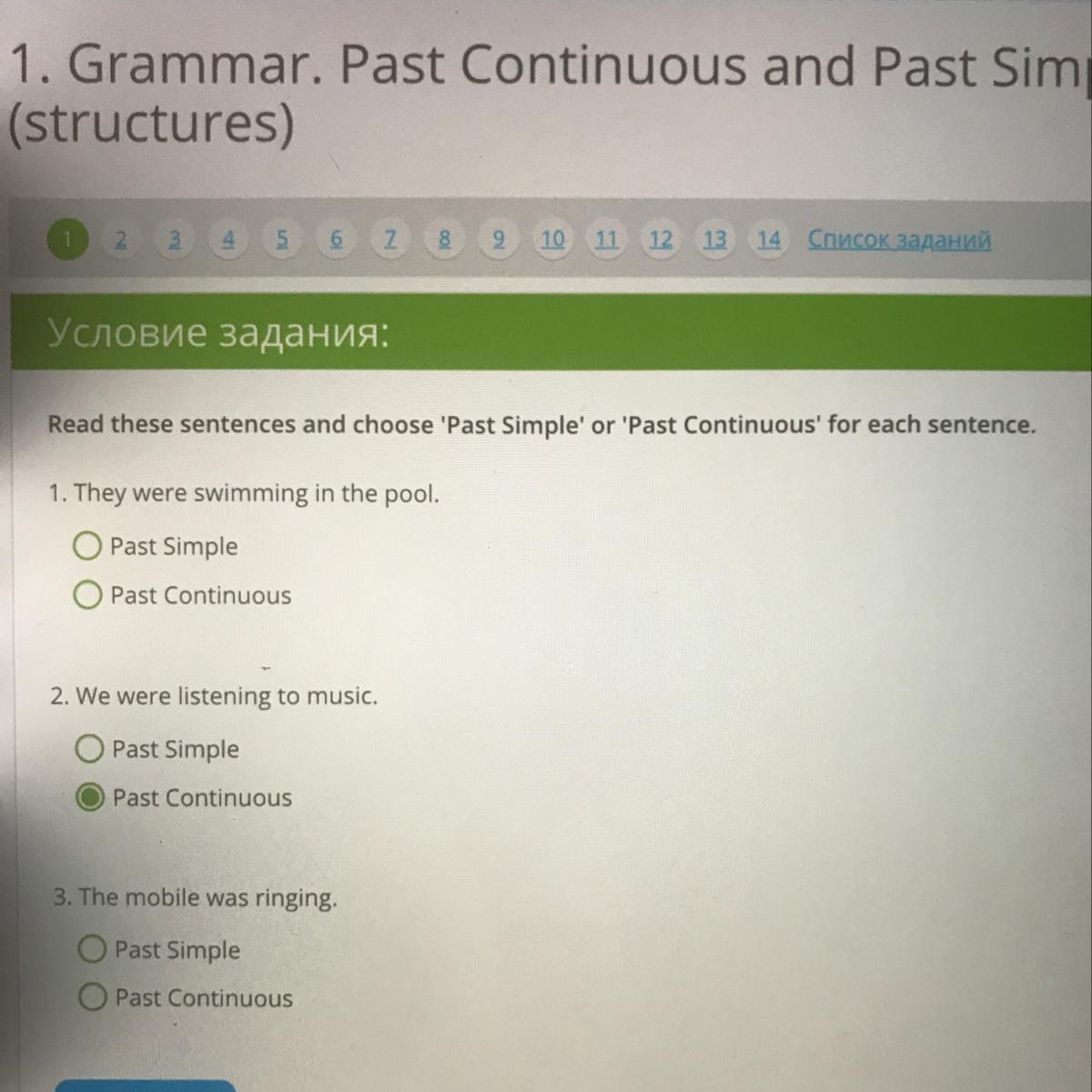 2)Past Continuous(т.к. were listening)