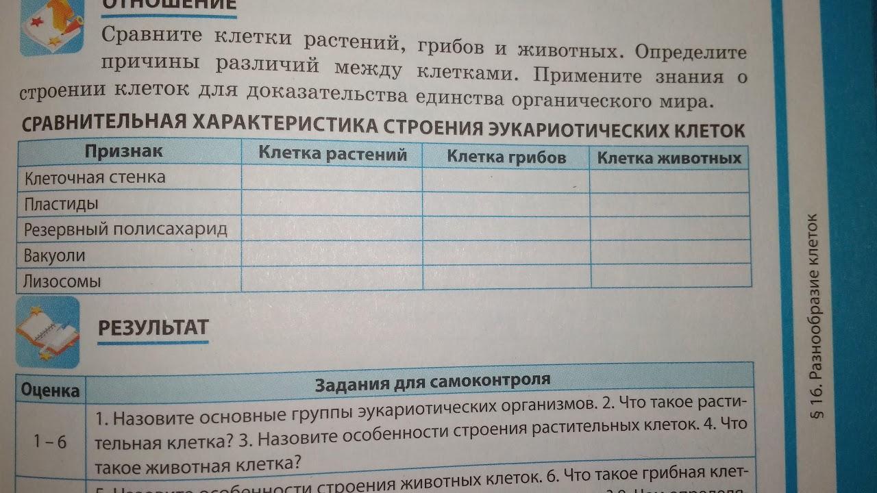 Сравните клетки растений грибов и животных. Определите причины различий между клетками. Примените знания о строении клеток для доказательства единства органического мира. Таблица ниже, прошу заполнить максимально кратко.