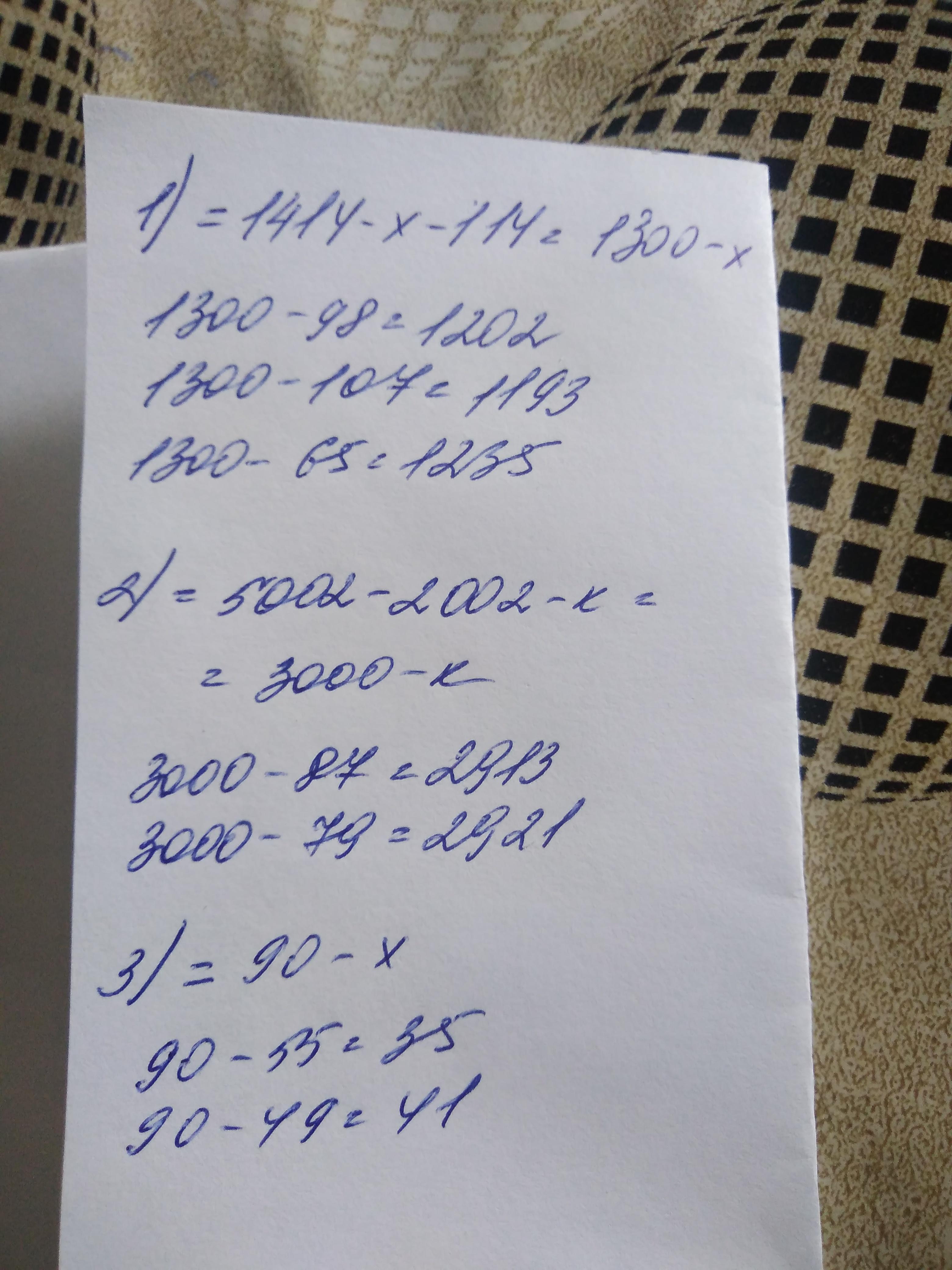1) 1414-(х+114)=1414-х-114=1414-114-х=1300-х