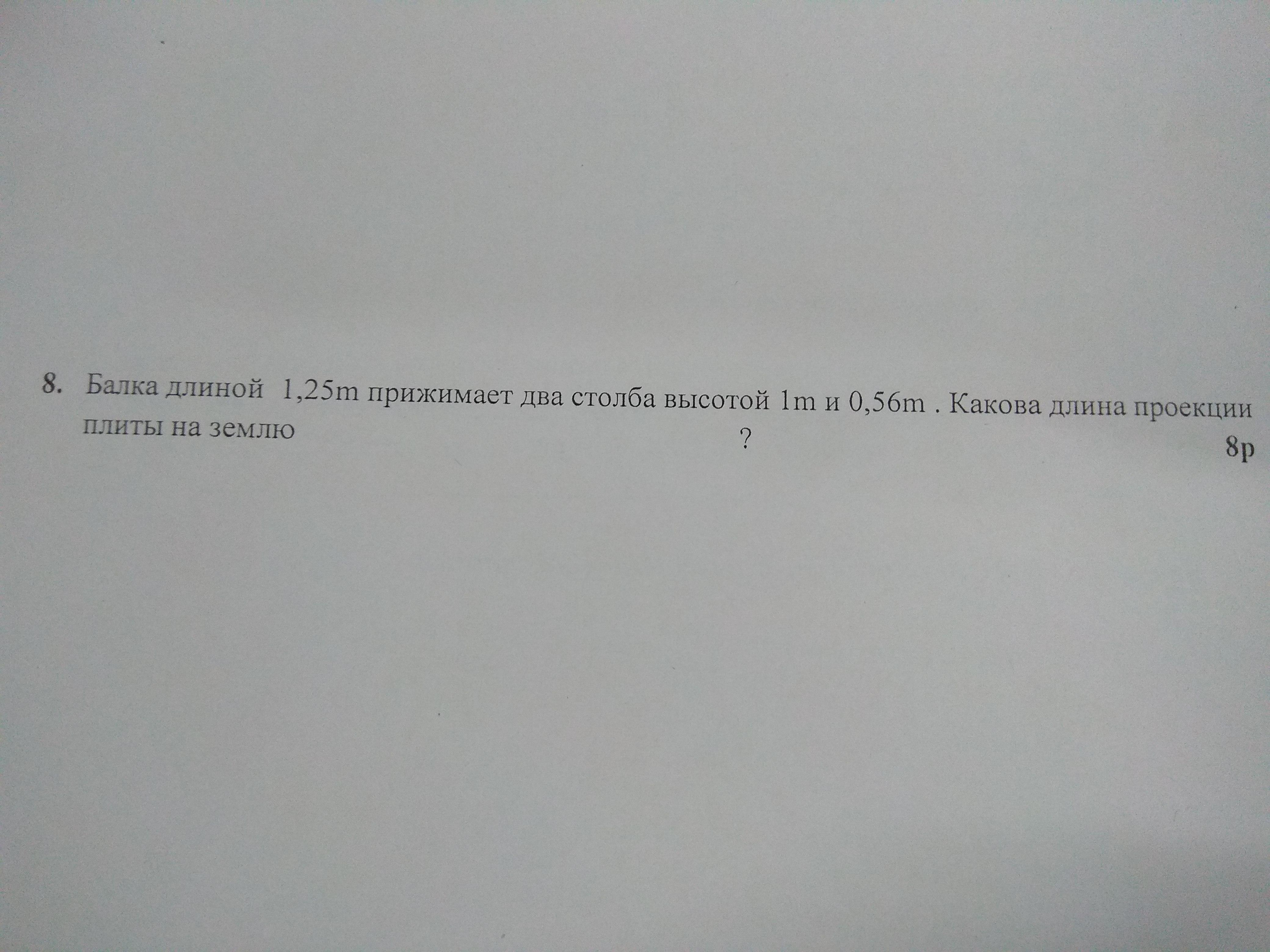 Рассмотрим фигуру ACED (см. рис.). Проведём отрезок BE, параллельный AD. ABED - прямоугольник. Значит BC = AC-DE = 1-0,56 = 0,44 m.