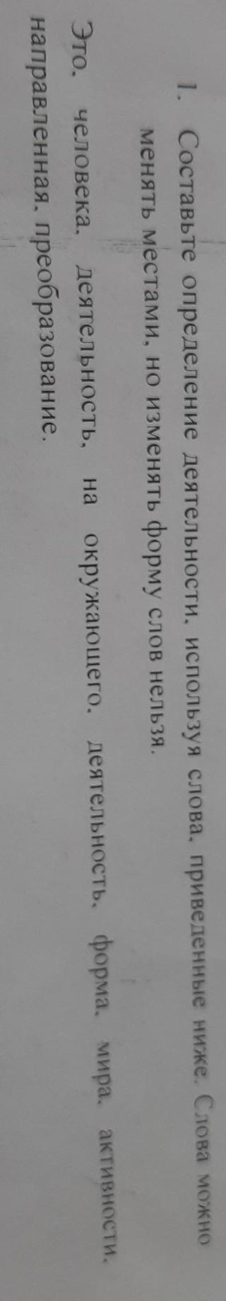 Ответ: Деятельность - это форма активности человека, направленная на преобразование окружающего мира.
