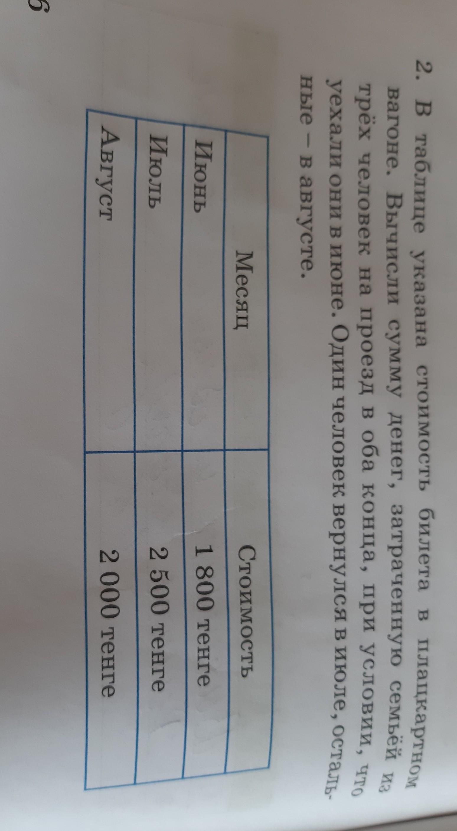 3) 4000 + 2500 = 6500 тенге стоили все обратные билеты